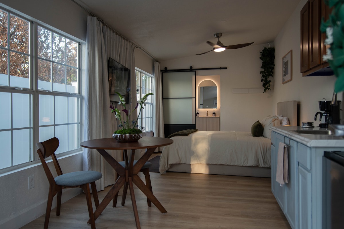 Potpuno renoviran studio iz 1950-ih (2024.) u sigurnoj i mirnoj četvrti Orlanda! Uživajte u plišanom bračnom krevetu, tuš-kadi, Roku TV-u i potpuno opremljenoj kuhinji s Keurigom. Uključuje privatni prilaz, zaseban ulaz i udoban dnevni boravak modernog uređenja. Radi lakšeg snalaženja, na raspolaganju su vam perilica i sušilica rublja. Samo 3 milje do centra grada, 10 milja do Universal, 8 milja do zračne luke i 18 milja do Disneyja - savršeno za parove ili putnike koji putuju sami koji traže udobnost, privatnost i moderan stil u mirnom okruženju.