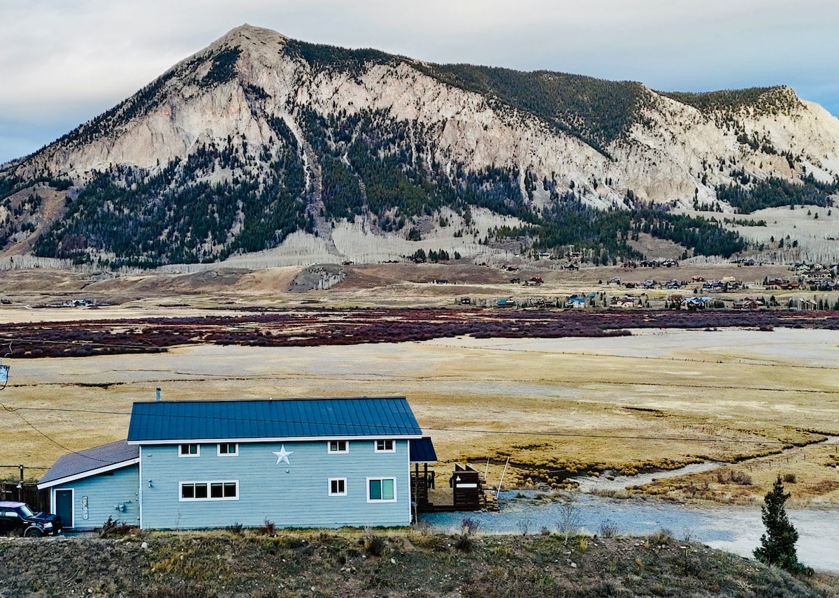 ❤️ LOVE YOUR PERFECT GETAWAY in the heart of Crested Butte Town - West coveted side! ☕ Wake up to breathtaking 180° views of 🏔️ Mt. Crested Butte & the Maroon Bells. 🛍️ Just 2 blocks from Elk Ave’s shops & 🍽️ restaurants. 🚌 Steps from the FREE ski shuttle. 🏡 Luxury 2BR/2BA with designer touches, plush beds, 👩🍳 chef’s kitchen, 🔥 fireplace, 🚿 steam shower & sunny 🌞 deck with BBQ. 🐾 Dog friendly. 🌱 Eco-conscious. ✨ Perfect for 🎿 skiing, 🥾 hiking & 🚴♀️ biking.