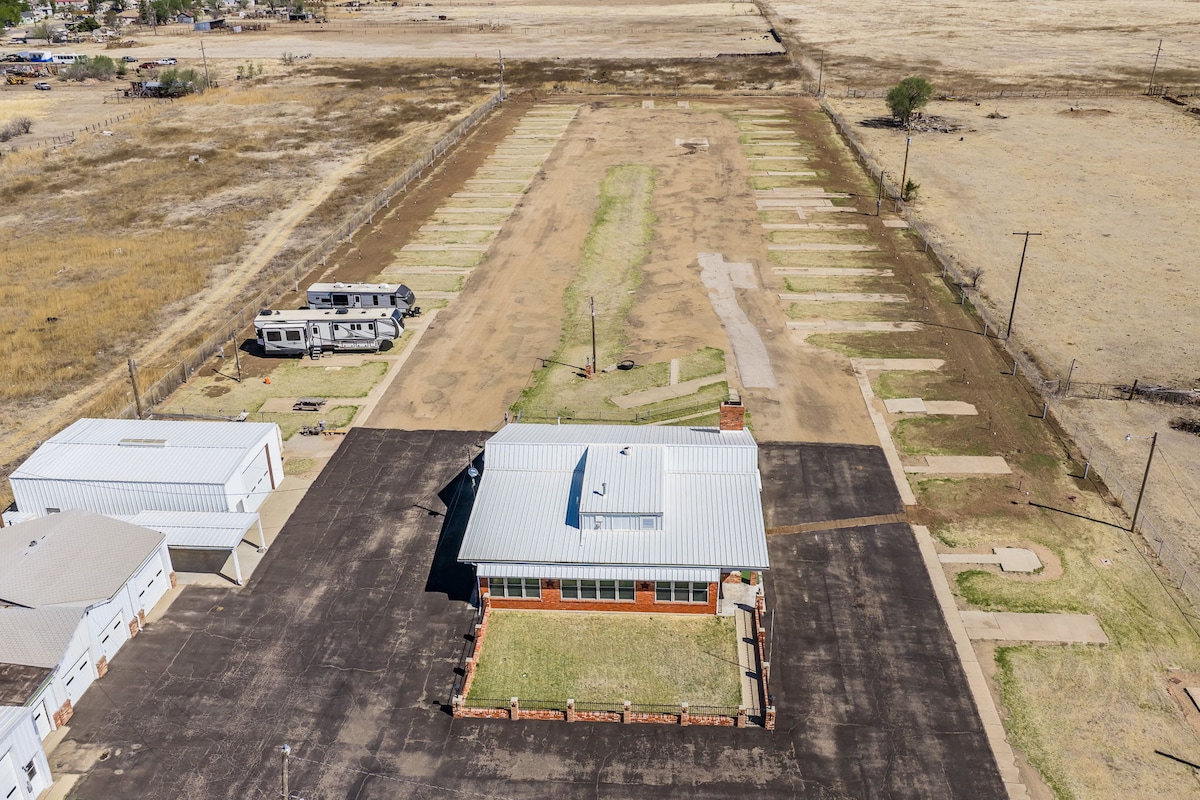 The whole group will be comfortable in this spacious and unique space! Situated on a spacious 4-acre RV park property in Pampa, TX. This 3 bedroom, 3 bathroom home offers flexible living with a loft, basement, office, utility room. Enjoy 3 separate living areas, 2 of which have their own wood-burning fireplaces for added comfort and charm. The home features a fenced front & backyard. Washer and dryer included. Plenty of space, versatility, and convenience all in one!
