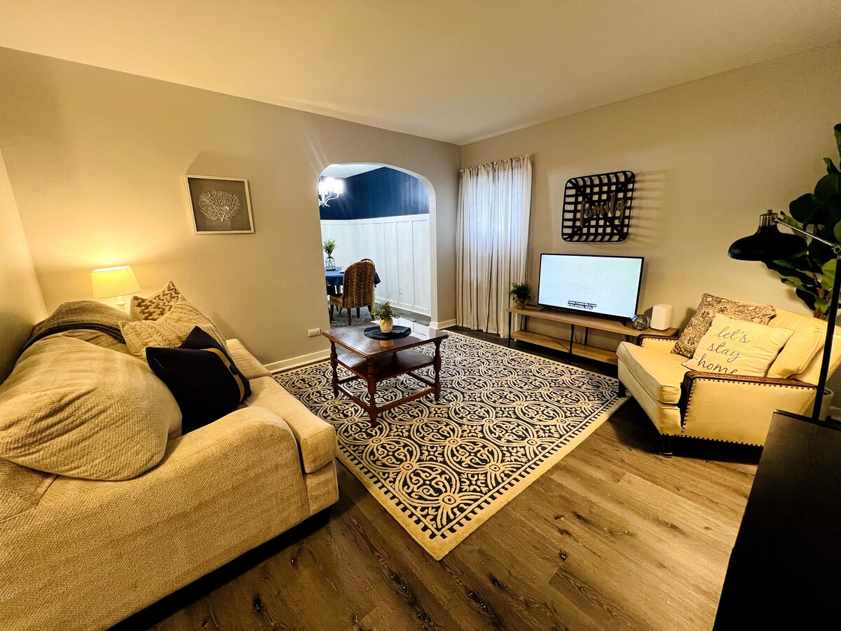 Planirajte svoj sljedeći bijeg u Indianu ili Illinois i ostanite u ovom lijepo obnovljenom i pažljivo uređenom domu s 3 spavaće sobe i 1 kadom. Smješten u mirnom i sigurnom predgrađu Munster, Indiana, objekt je samo 3 minute, jednostavan pristup autocesti I-94. Uzbudljivi centar Chicaga udaljen je samo 30 minuta! Prošećite do parka Riverside i uživajte u panoramskom pogledu dok uživate u jutarnjim kroasanima i kavi iz jednog od neobičnih kafića u susjedstvu.