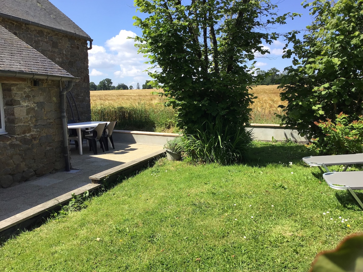Šarmantna mala seoska kućica ,tiha i elegantna, poziva vas da dođete i opustite se tamo. Bit ćete u zelenom i mirnom okruženju. Smješten 5mn vožnje od parkirališta Mont i 1,5 km hoda od besplatnog prijevoza Gostima je na raspolaganju siguran prostor za odlaganje bicikala. Privatna terasa s vrtnim namještajem i visećom stolicom the greenway is located 1 km for beautiful walk to Mont Saint Michel ,Pontorson or Cancale , Saint Malo