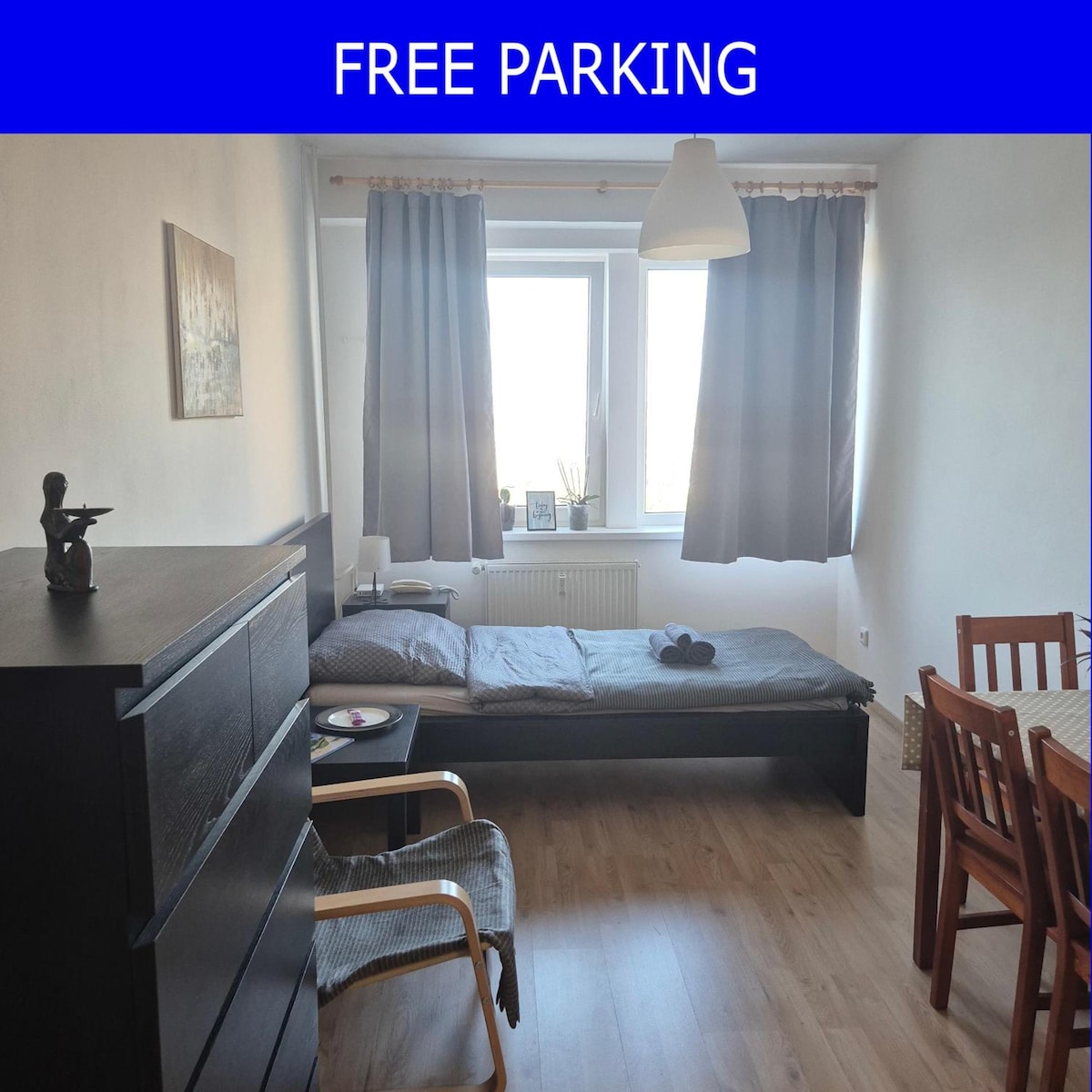 Vrlo ugodan, moderan i lijepo uređen apartman s potpuno novom kuhinjom, kupaonicom i dva puna kreveta, idealan za četveročlanu obitelj ili dva para. Izvrsna lokacija – nalazi se u mirnoj četvrti u blizini stanice Andel, gdje možete sjesti na metro/tramvaj i stići u središte za 10 minuta ili se vrlo lako odvesti bilo kamo. U neposrednoj blizini nalazi se trgovački centar, mnogo restorana i park.