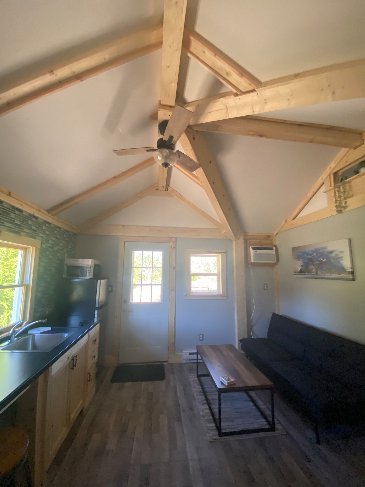 Ovaj tihi MALI dragulj, privatno ušuškan, a ipak vrlo pristupačan, Cabin Unwind, ima sezonski trijem, bračni krevet, nekoliko „kuhinjskih aparata” i ODLIČAN Wi-Fi. ZAJEDNIČKA kupaonica u KUĆI ima vlastiti sporedni ulaz, nasuprot brvnare. U blizini se nalazi i LJETNI ZAJEDNIČKI porta-potty i odgovarajući tuš. ZIMSKI GOSTI, imajte NA umu...NE spuštajte SE NA prilaz bez ODGOVARAJUĆIH ZIMSKIH guma! Ostavite automobil na preokretu i rado ću vas i vašu opremu prenijeti.