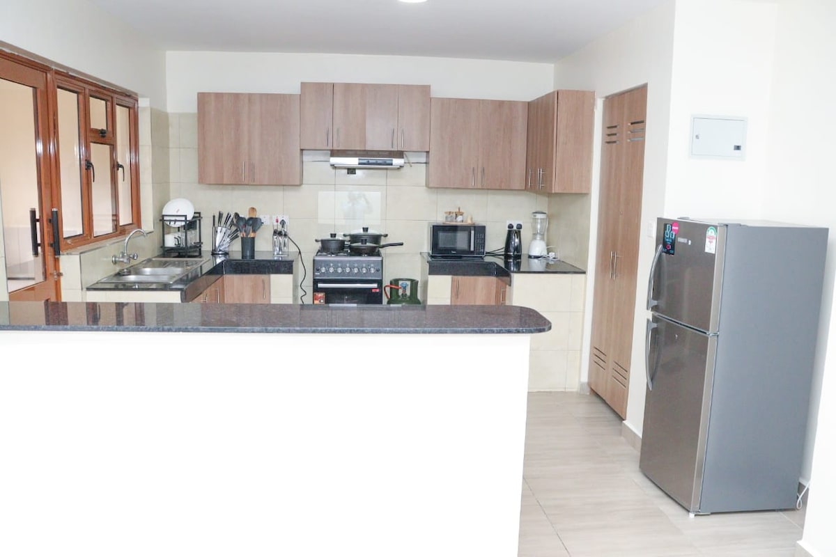 Doživite savršen spoj urbane elegancije i udobnosti u ovom izuzetnom stanu koji se nalazi samo 5 km od CBD-a u Nakuru Cityju i 7 km od Nacionalnog parka Nakuru. Stan je opremljen brzim internetom, Smart TV-om i velikim super elastičnim krevetom od pjene kako bi se osigurao udoban san. Također možete uživati u potpuno opremljenoj kuhinji s mikrovalnom pećnicom, hladnjakom i plinskim štednjakom te perilici rublja s prednje strane koja može podnijeti punjenje od 7 kg.