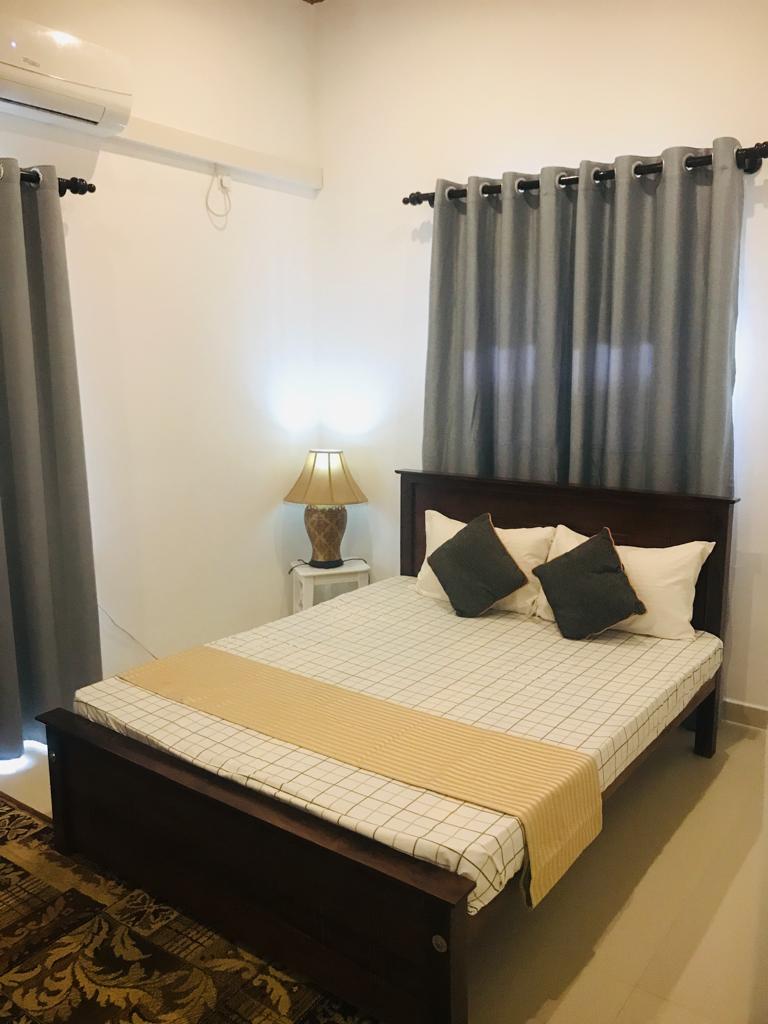 Dobro došli u svoj savršeni drugi dom! Ova šarmantna obiteljska kuća nudi opuštajući i siguran boravak u mirnoj četvrti, što je idealno za obitelji, parove i poslovne putnike. •3 spavaće sobe s udobnim bračnim krevetima • 1 moderna kupaonica s toplom vodom i tušem s efektom kiše •Potpuno opremljena kuhinja s plinskim štednjakom, hladnjakom, priborom za jelo i osnovnim sadržajima • Blagovaonica i velika otvorena dvorana za obiteljska okupljanja ili opuštanje s klima-uređajem • Klima-uređaj u spavaćim sobama za hladan, miran san