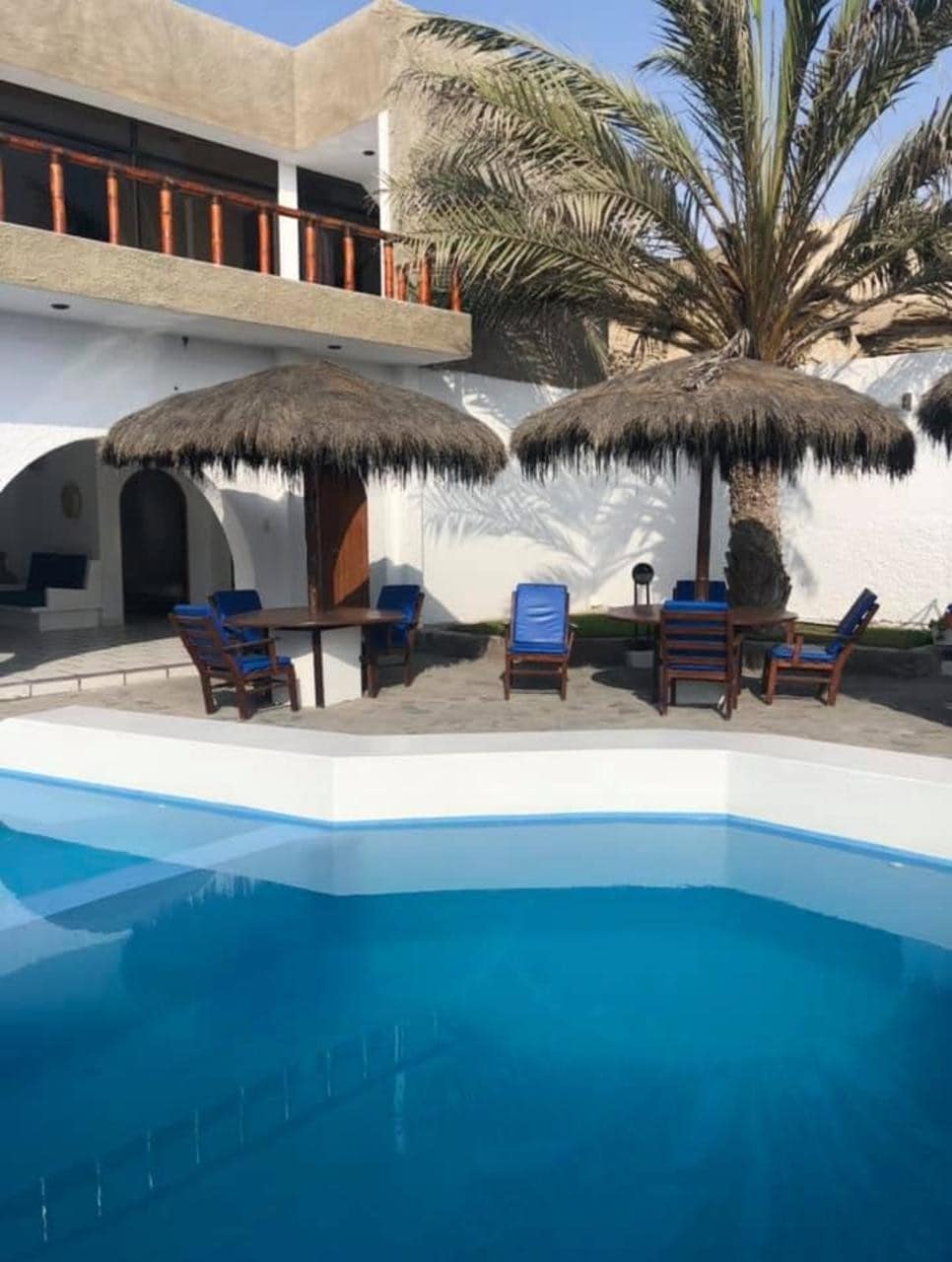 Preciosa casa con amplio jardín, palmeras y piscina hecha de rocas frente al mar con acceso directo a la playa, toda la casa mira al Mar. La zona cuenta con amplias vías para realizar caminatas , surfing, cycling y running. Cuenta con una piscina para los huéspedes y zona para realizar fogatas y parrilladas todo frente al Mar. Tiene el acceso más cercano a San Bartolo para diferentes servicios .