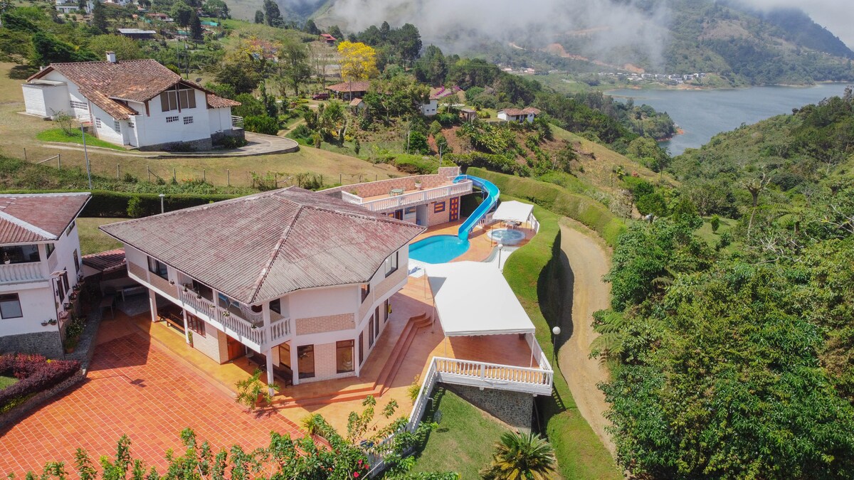 Relax with the whole family & friends at this peaceful place to stay. La exclusiva finca "Casa Nueva" cuenta con piscina, jacuzzi con calefaccion, kiosko, asador, zonas verdes, sendero, vista y acesso al lago. Tiene una capacidad máxima de 20 personas. Le recomendamos a nuestros clientes reservar con tiempo por que estamos en temporada de alta demanda Entrada: 10:00 am Salida: 5:00pm Somos petfriendly Wi- Fi Cable Direct TV Muelle Privado