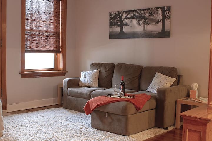 Topao i prostrani stan s 2 spavaće sobe u blizini CTA Blue, jednostavno parkiranje!