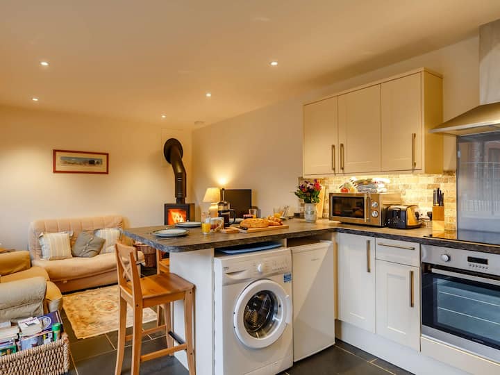 Nakon lutanja stazom na jugozapadnoj obali, upalite plamenik na drva u dnevnom boravku/kuhinji/blagovaonici otvorenog tlocrta kako biste umirili umorne mišiće hodajući i zagrijali prohladne prste i šape. Uživajte u večeri na udobnom kauču ili isplanirajte sutrašnju avanturu u baru za doručak dok pripremate obilan obrok sa svim lokalnim proizvodima koje ste skupili. Neutralno uređenje prizemlja prenosi se na kat preko obje mirne spavaće sobe, koje imaju neke zapanjujuće originalne grede i prozore u stilu staje koji će vas odvesti do prošlih stoljeća. Prije spavanja operite pješčane prste u velikoj tuš-kadi u kupaonici. Vani se uputite u zajednički prostor s terasom ili prostrani zajednički prostor za sjedenje s krušnom peći za pizzu i roštiljem na otvorenom. Djeca će voljeti istraživati zajednički prostor za igru na otvorenom ili se boriti za stolni tenis.