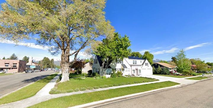 The former home of Utah's famous Food Nanny, the Colonial ima prostrane udobne spavaće sobe, dobro uređene kupaonice i profesionalnu kuhinju, drugu kuhinju i dnevnu sobu, dvije terase, Arctic Spa, 2 ognjišta, vanjsku blagovaonicu i uzdignute vrtove kreveta koje dobro održavamo. Jedan od dva garažna prostora također je pretvoren u prostoriju za igre s arkadnom konzolom, stolom za stolni tenis i prostorom za pohranu vaše opreme (bicikli, skije itd.). Bungalow Blueberry u susjedstvu je super slatki bungalov s 2 spavaće sobe i 1 kupaonicom s prekrasnim drvenim podovima, zabavnim i udobnim namještajem, posebnim apartmanom za pse u praonici s vratima za pse do savršenog dvorišta prikladnog za pse s travom, drvećem, vanjskim blagovaonskim prostorom i ognjištem. Kućni ljubimci su dozvoljeni samo u bungalovu. Sve zajedno oba smještaja mogu primiti ukupno 22 gosta, 6 vozila, 2 kućna ljubimca. Na raspolaganju su 4 bračna kreveta, 2 bračna kreveta, 2 bračna kreveta i 6 kreveta za dvije osobe.