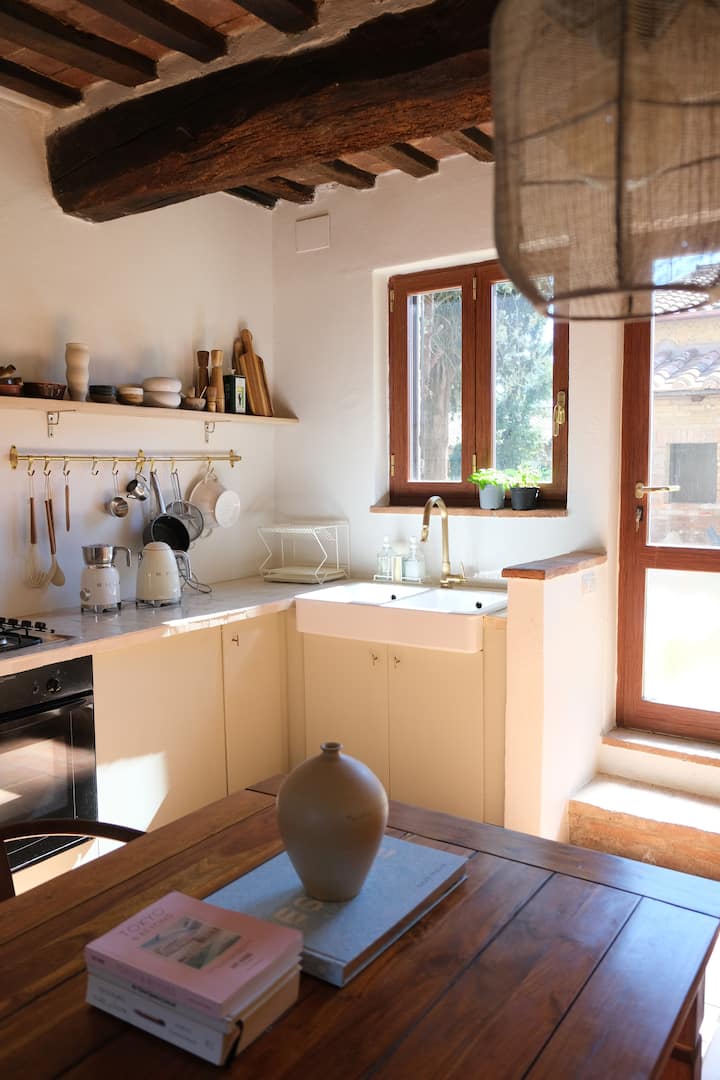 Osim lokacije, smještaj je pokazao i mnogo potencijala za nas. Starija umbrijska seoska zgrada s nesavršenjima koja nam se svidjela i toliko prilika da renoviramo i stvorimo mirnu atmosferu seoske kuće u kojoj se nadamo da ćete uživati. Svi smo radovi na renovaciji bili obavljeni vlastitim rukama i jako nam je drago što ćete s nama doživjeti dio naše priče.