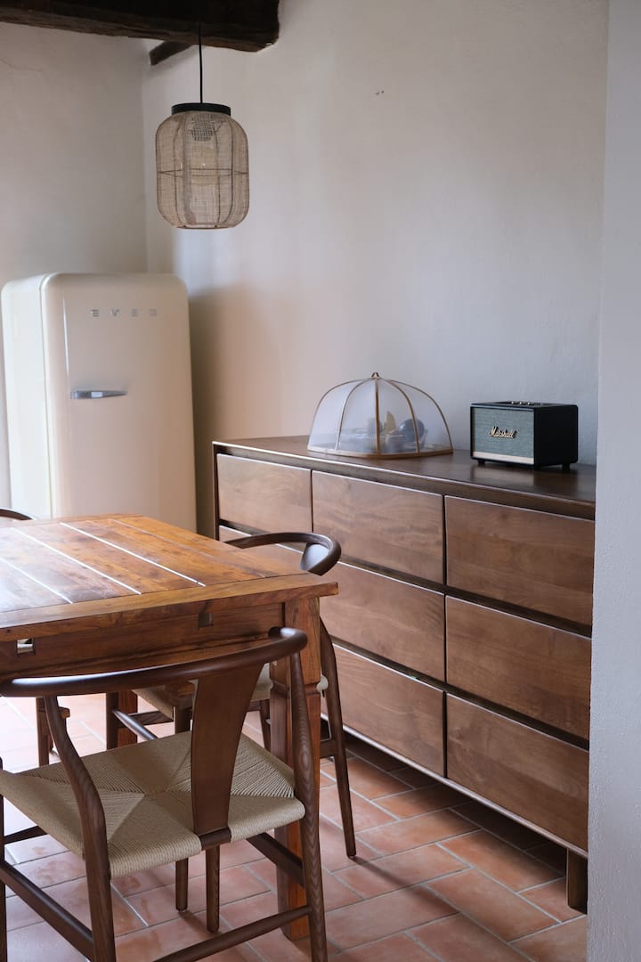 Otvorena kuhinja naša je oaza. Stil seoske kuće, lagan, svijetao i savršen za nevjerojatne mirise, razgovore i hranu. Opremljen je velikim smeg hladnjakom/zamrzivačem, smeg kuhalom za vodu, smeg aparatom za pjenu za mlijeko, aparatom za filter kavu Moccamaster, talijanskim aparatom za tjesteninu, plinskim štednjakom i pećnicom te dobrim radnim prostorom za otkrivanje i uživanje u najboljem od domaće talijanske kuhinje.