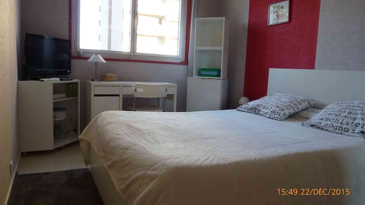 Mi smo par i imamo troje djece koja više ne žive u našem F5. Obnovili smo najveću sobu od 11 m2 i već 3 godine primamo strance na kratke boravke, odrasle koji pohađaju tečajeve ili Erasmus studente. Sada imamo znanje i iskustvo da vam ponudimo našu sobu za najam.