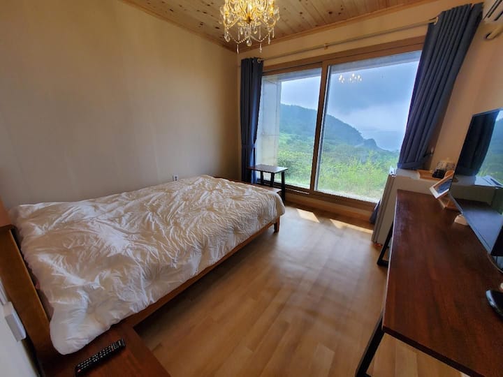 Na početku staze🌄 Jeju Olle Trail Route 18-1 nalazi se kuća. Možete uživati u planinarenju na vrhu Mt.