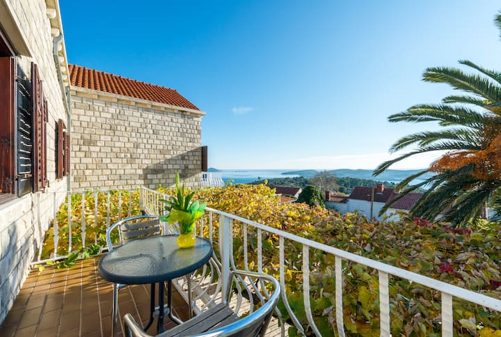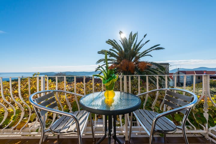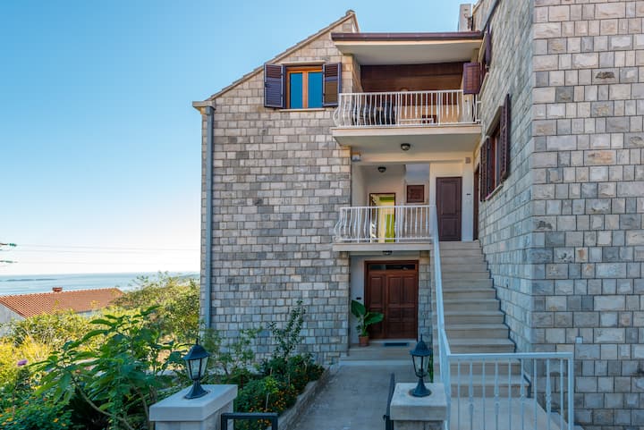 Stan (Ap 1) s balkonom, bazenom i pogledom na more