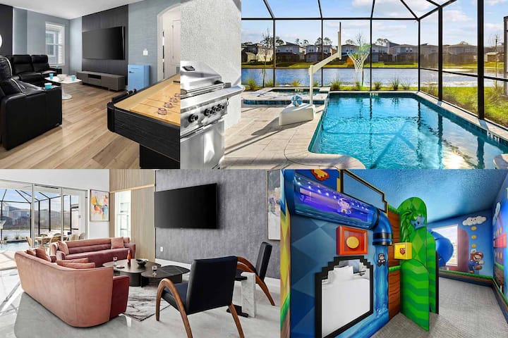 Doživite svoj najbolji odmor u Orlandu u ovoj prekrasnoj, potpuno novoj vili s 6 spavaćih soba, smještenoj NEKOLIKO KORAKA od Universal Orlanda i svih poznatih trgovina, restorana i zabave na International Driveu! Ovaj smještaj iz snova uključuje dizajnersku blagovaonicu otvorenog tlocrta, privatni bazen i spa te 6 prostranih spavaćih soba, od kojih je jedna fantastična tematska soba za djecu. Sve to i još mnogo toga za cijenu po spavaćoj sobi koja je mnogo manja od sličnih hotela u blizini!