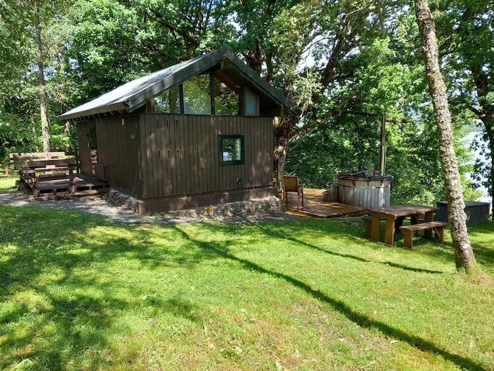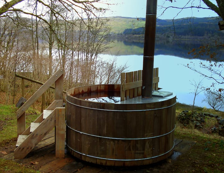 Drvena kuća Sloy s masažnom kadom na drva