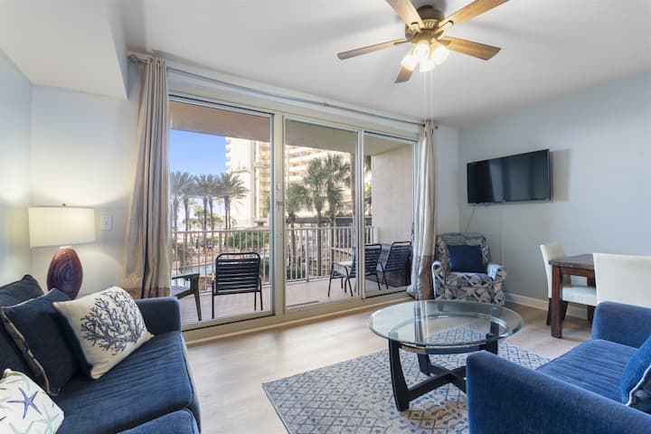 Shores of Panama #219 is a 2BR+Bunk/3BA condo that has cozy couches, a long dining room table for formal Dinners, a spacious outdoor balcony area to watch the sunrise, and a modern kitchen that makes it easy and fast to make it easy and fast to make cocktails, bring snacks, store food, and cook up a five-course meal in no time at all at all time. Ovaj kondominij može udobno primiti do 8 gostiju.