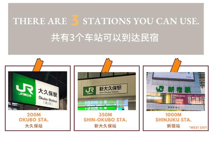 3.From Shin-Okubo Sta. 5mins(350m)