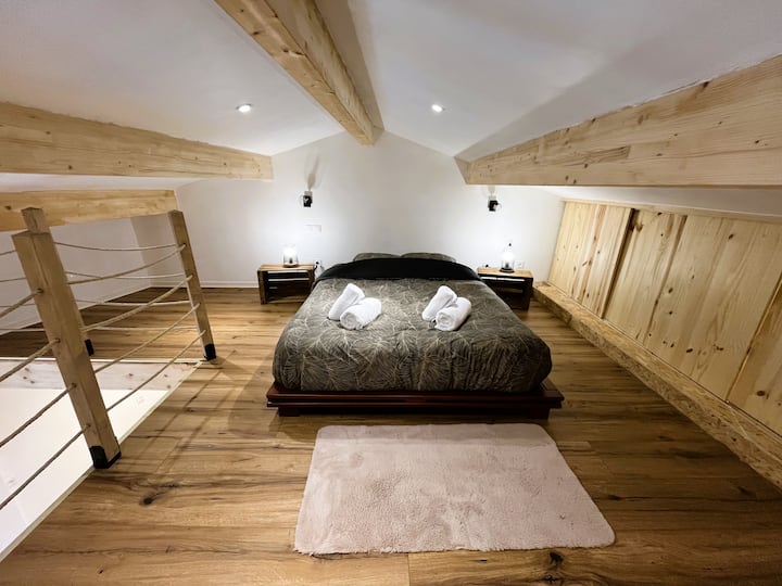 Smještena iznad Albarinea, ova kuća je mirno utočište, a ujedno je blizu sadržaja, samo nekoliko kilometara od sela Saint Rambert en Bugey i 15 minuta od Ambérieu en Bugey. To je savršeno mjesto za odmor u paru, s obitelji ili prijateljima u iznimnom prirodnom okruženju.