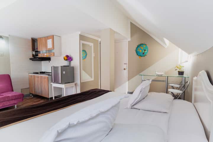 This charming Apartamento is part of 45 beautiful and comfort aparttastudios fully independent. Potpuno opremljeni i pripremljeni za 4 osobe (maksimalan kapacitet), imat ćete bračni krevet, sofu IKEA, privatnu kupaonicu i električnu kuhinju opremljenu svim osnovnim alatima potrebnim za pripremu hrane. Imat ćete i komplet donjeg rublja za krevet i ručnike za goste, osobne toaletne potrepštine kao što su toaletni papir i tekući sapun za tijelo.