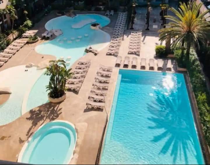 Prekrasan stan na 6. i posljednjem katu s pogledom na planine u rezidenciji s bazenima koji se idealno nalaze u centru grada Cannes la Bocca s izravnim pristupom moru.