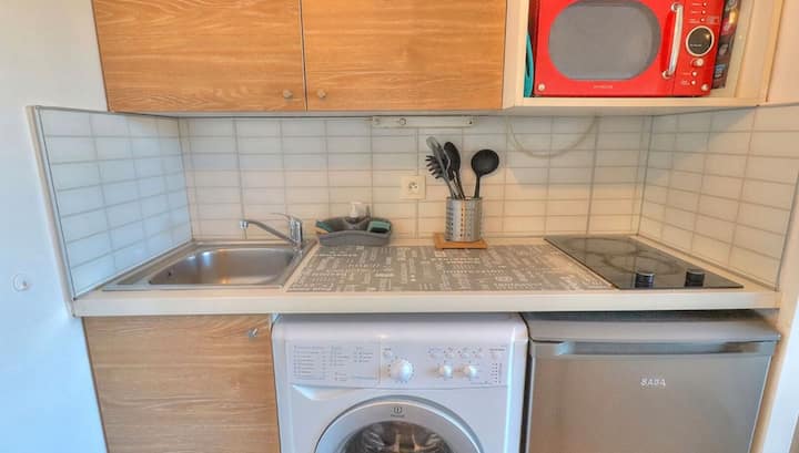 Nudim svoj vrlo lijep cijeli i vrlo svijetao stan od 26 m2 koji je u potpunosti klimatiziran i nalazi se na 6. i gornjem katu zapadno okrenutoj prema velikoj rezidenciji za odmor pod nazivom „Cannes Beach”.