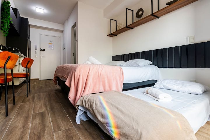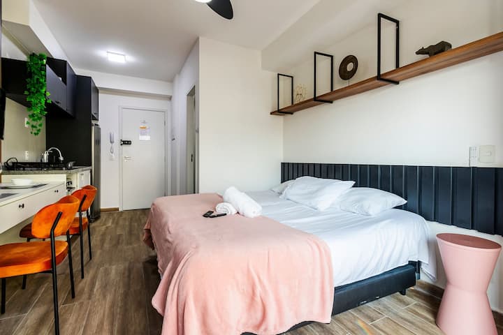 Studio Cama King + Piscina, Rooftop i Metrô