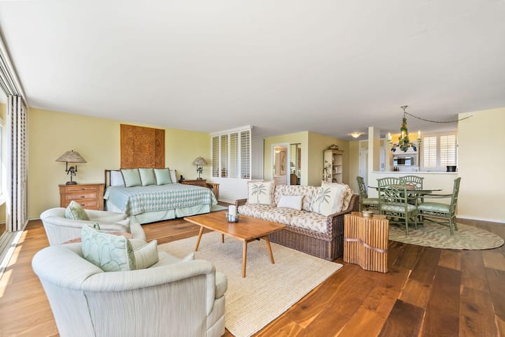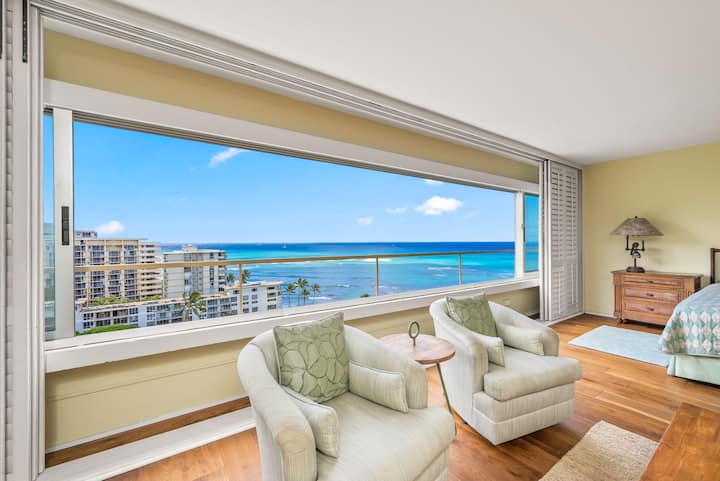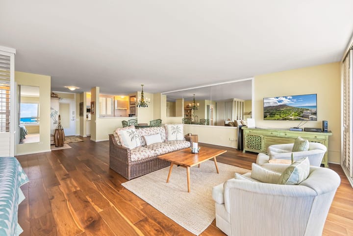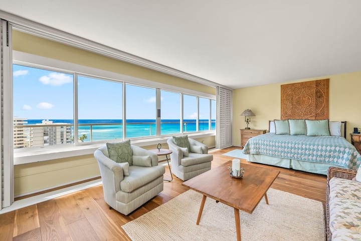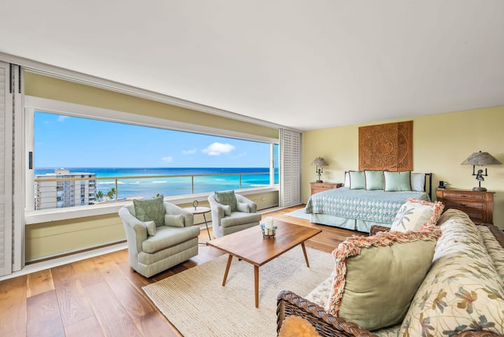 Potpuno opremljena jednosobna jedinica u četvrti Colony Surf samo je nekoliko koraka udaljena od oceana. Diamond Head i pogled na ocean. Bračni krevet (180x200). Uključeni su kabelska televizija i Wi-Fi. Jedno parkirališno mjesto. Perilica i sušilica u jedinici.