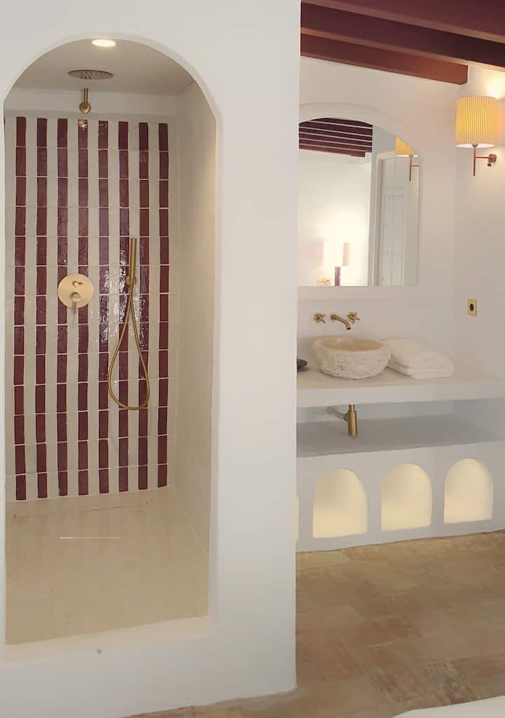 Što se tiče kupaonica, posebnu smo pozornost posvetili tome da budu prostrane i udobne. Osigurali smo dobru opskrbu toplom vodom i odgovarajući pritisak kako biste se osjećali potpuno opušteno. Osim toga, dizajn kupaonica slijedi jednostavnu, ali elegantnu estetiku, koristeći se prirodnim materijalima i ručno izrađenim keramičkim komadima, kako bi se stvorila skladna i ugodna atmosfera u skladu sa svakom od prostorija.