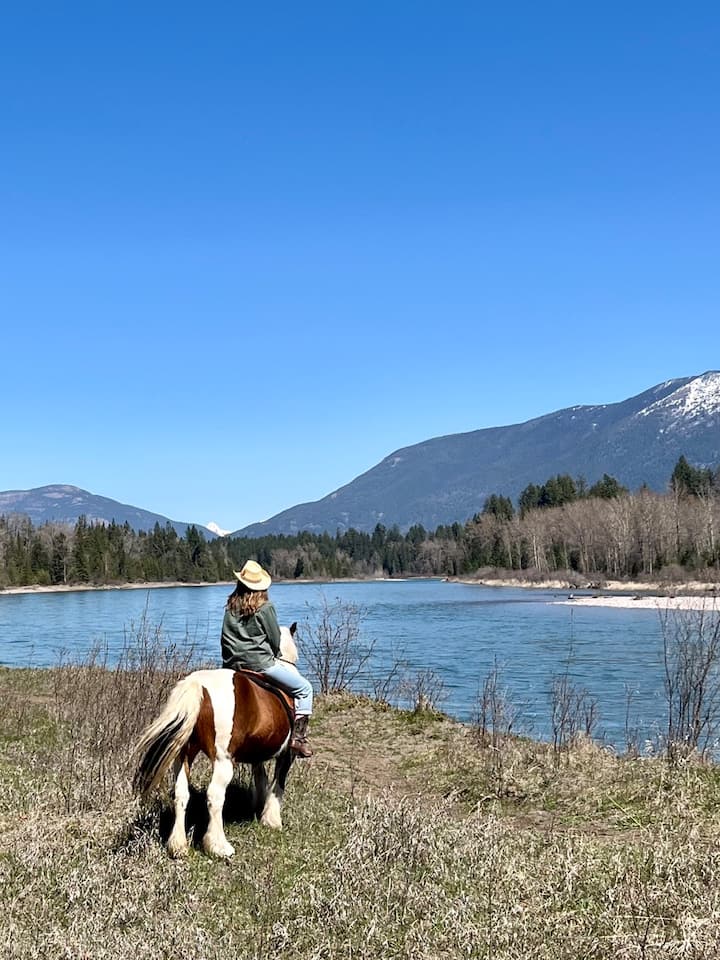 ⟩ Natural Beauty and Exploration: Our ranch offers 80 acres of land for you to explore, including direct access to the Flathead River and hiking trails, all under the look of the majestic Swan Mountain Range and Glacier Park.