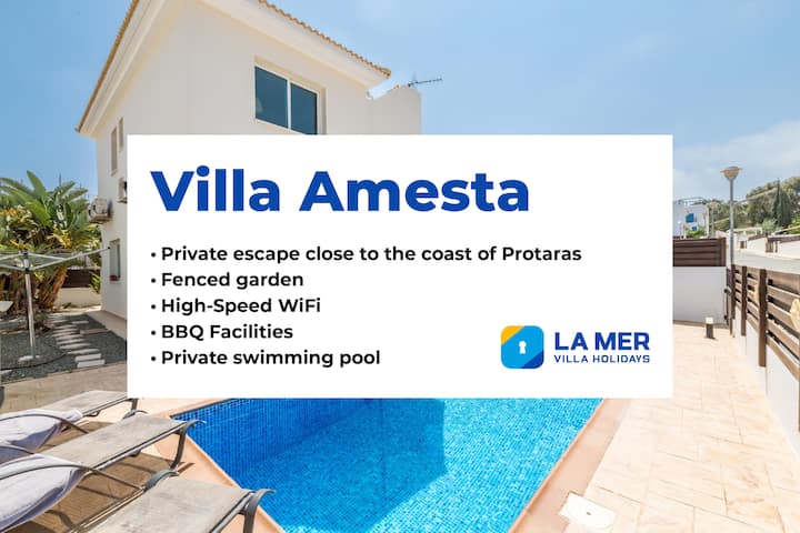 Villa Amesta šarmantno je utočište s tri spavaće sobe smješteno u slikovitom području Cape Greca, odmah preko puta hotela Leonardo Cove. Savršeno prilagođena obiteljima ili malim grupama, ova vila udobno prima do šest gostiju i nudi opuštajući privatni odmor u blizini obale Protarasa.