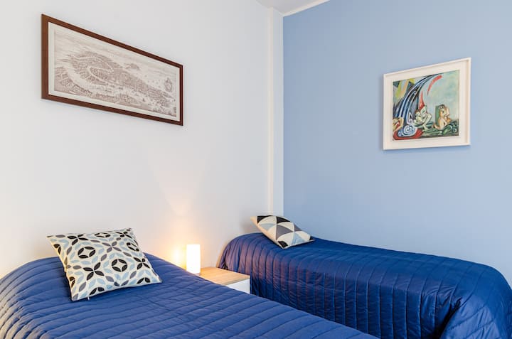 Na ulazu se nalazi prostrani dnevni boravak s prostorom za opuštanje i čitanje, veliki stol za ručkove i velika kuhinja. Postoje dvije spavaće sobe s ormarima, kupaonica s kadom za tuširanje, velika kupaonica/praonica rublja. Optički Wi-Fi. Stan je upotpunjen s dva velika balkona s pogledom na grad.