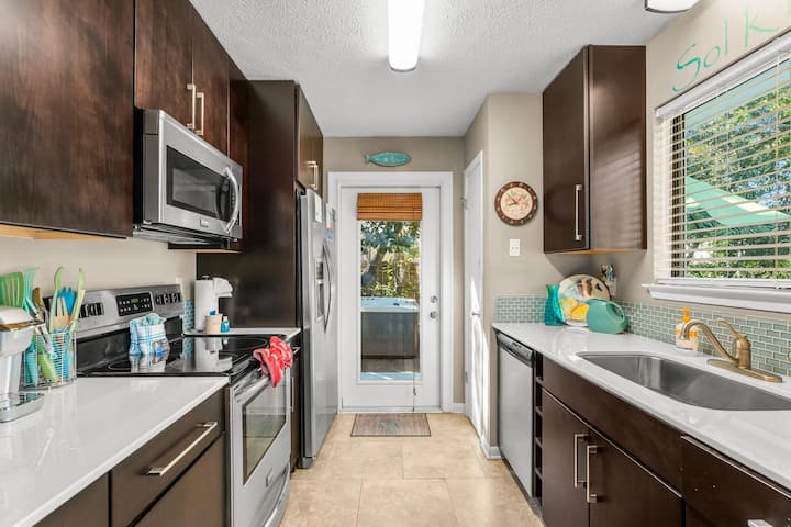 Skriveni dragulj u blizini plaže s vozilima za golf i masažnom kadom!