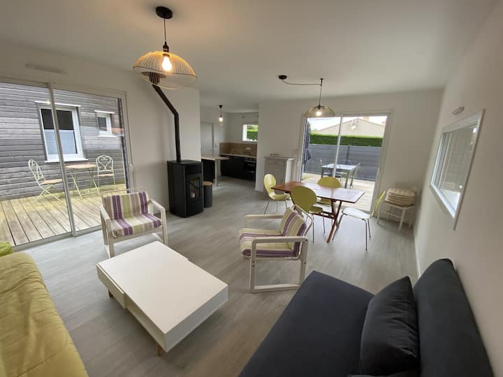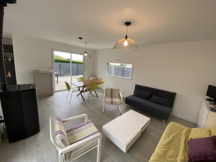 Ova kuća od 90 m², koja je dobila 3 zvjezdice u okviru programa Clé Vacances, pružit će vam svu potrebnu udobnost za vaš odmor. Idealno za obiteljski boravak ili s prijateljima, može primiti 5 do 6 osoba u mirnom i umirujućem okruženju.