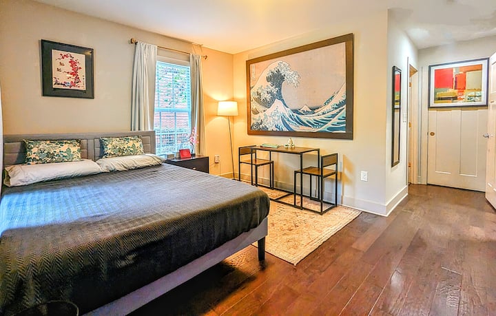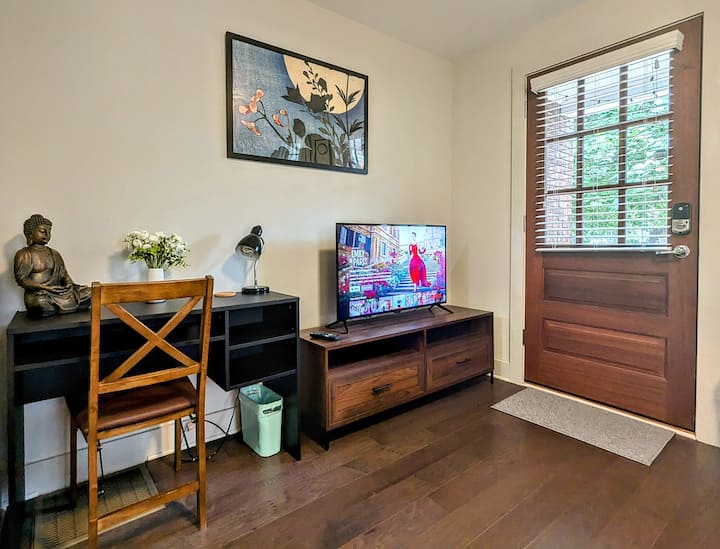 Opustite se u našem zen utočištu u gradu. Smješten u šarmantnom Wesley Heightsu, ovaj smještaj s 1 spavaćom sobom i 1 kupaonicom udaljen je samo 1 milju od Uptown Charlottea. Lagana šetnja do stadiona BofA, Spectrum Centra, restorana i barova. Javni prijevoz na ulici: najbliža stanica udaljena samo 1 blok. Idite ulicama obrubljenim pločnikom, biciklističkim stazama ili zelenom stazom do stadiona BofA. Ograđeno dvorište nudi privatnost, sigurnost i mirno mjesto za odmor u srcu grada. Potpuno renoviran sa svim modernim završnim obradama i sadržajima.