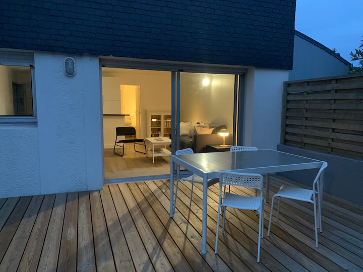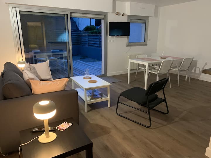 Šarmantni potpuno novi T2 koji vas čeka u prizemlju vrlo mirnog malog kolektiva. Gosti mogu iskoristiti prednosti prostrane jugozapadne terase, modernog uređenja i velike garaže za odlaganje bicikala, daski za surfanje i drugih sadržaja. Parkirališno mjesto nalazi se u podnožju. Na idealnoj lokaciji doći ćete do brze ceste koja vodi do divlje obale za 2 minute, a do sela u 5. Prekrasna plaža Kerguelen nalazi se odmah preko puta, 400 metara preko puta. Pažljivo pročitajte detalje!