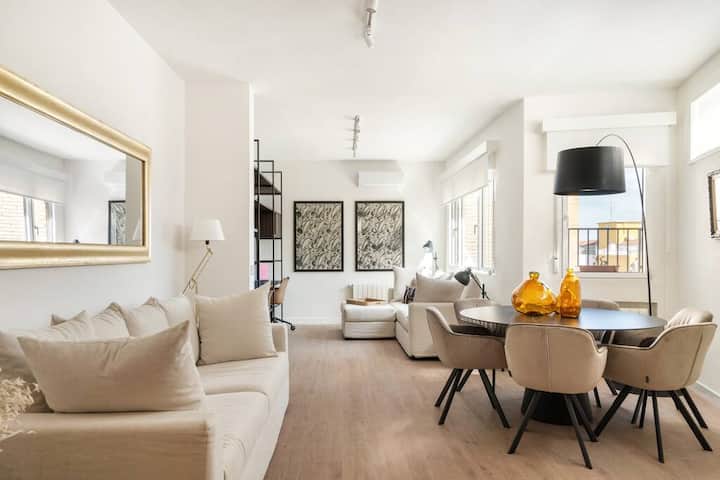 Okružen je luksuznim buticima, poznatim restoranima i kultnim znamenitostima. S povlaštenom lokacijom i besprijekornim dizajnom, ovaj stan nudi nezaboravan boravak u Madridu.
