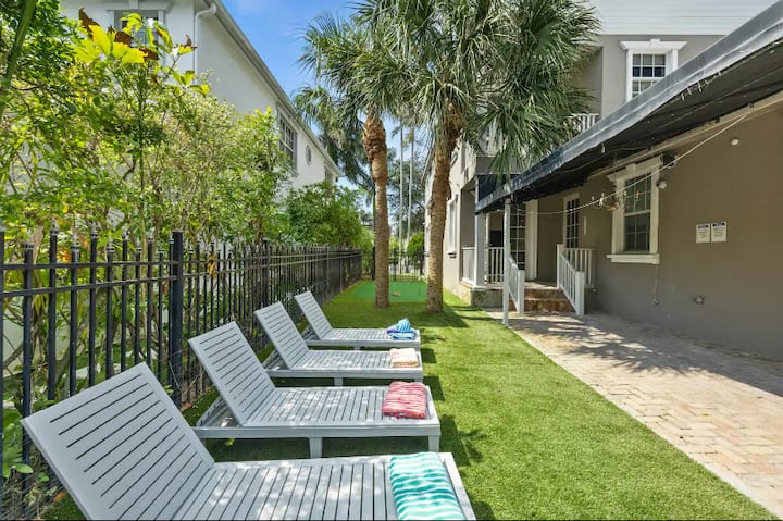 Nemojte propustiti ovu prostranu kuću s 4 spavaće sobe i 3 kupaonice na dvije etaže na ulici Adam's Street u Hollywoodu u Floridi. Uživajte u grijanom bazenu, mini-golfu i mnogo prostora za opuštanje u zatvorenom i na otvorenom. Smještena u šarmantnoj četvrti samo nekoliko minuta od plaža, restorana i zabave. Savršeno mjesto za zabavan i nezaboravan odmor.