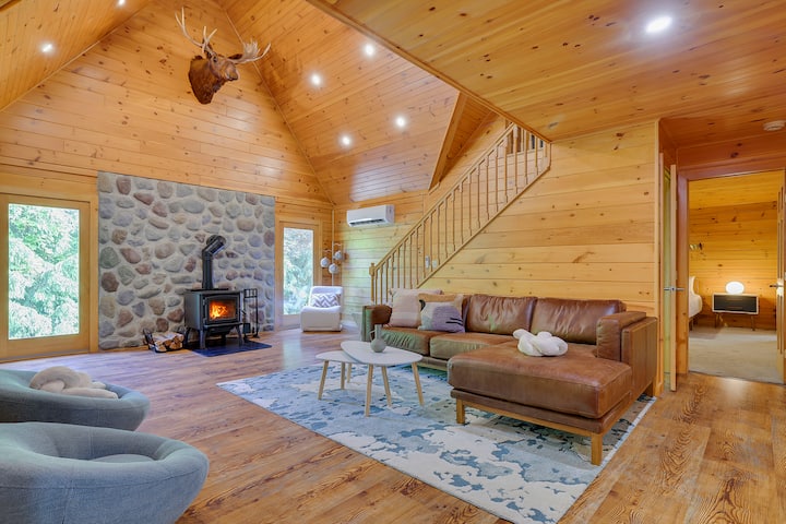 Obiteljska brvnara u blizini jezera Wallenpaupack – masažna kada – staza