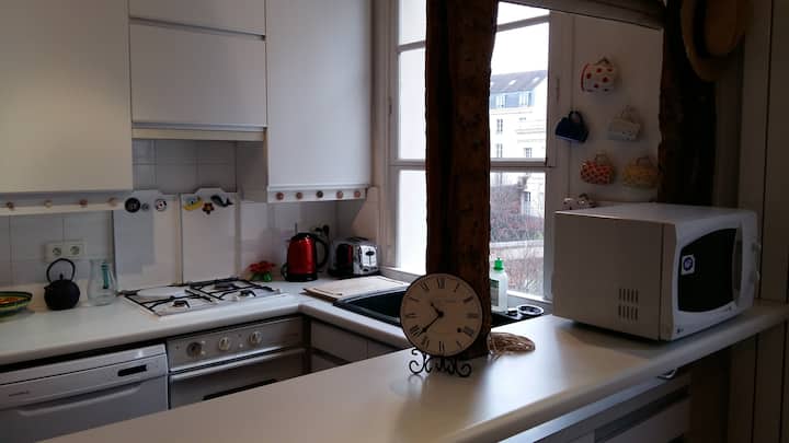 Beaubourg/Marais central, calme, clair, vue jardin