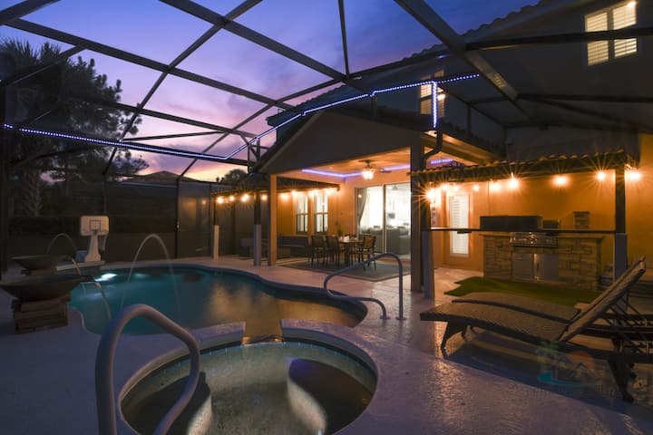Pogledajte svoju oazu na otvorenom! Privatni bazen i spa s fontanama za djecu i mirnom vodom za sve ostale! Vanjska kuhinja, mnogo rasvjete s led diodama i žičanim svjetlima te dovoljno prostora za sjedenje, jelo ili opuštanje na suncu! Sve bez susjeda iza vas, samo očuvanje na koje treba obratiti pažnju!