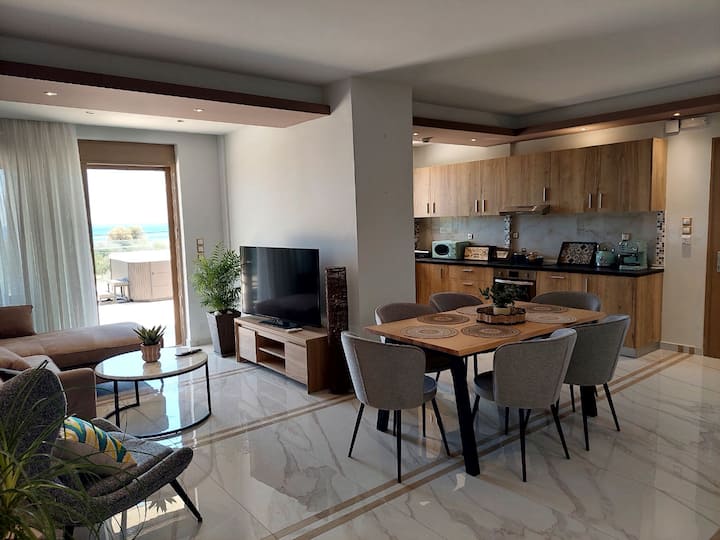 Stan na prvom katu ukupne površine 120 četvornih metara koji nudi tri velike sobe, dvije kupaonice, kuhinju i prostrani dnevni boravak i blagovaonicu te s lakoćom može primiti do osam gostiju. Također ima veliku terasu od 50 četvornih metara s pogledom na more s hidromasažnom kadom.