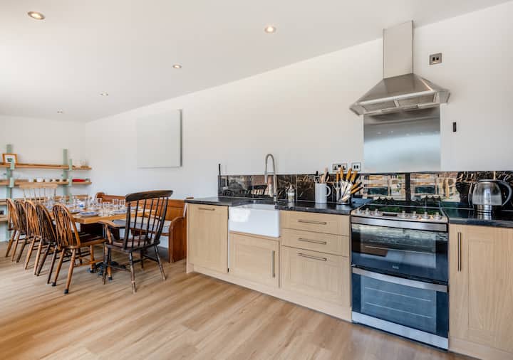 Zakoračite u ovaj nekadašnji svinjac koji je nedavno imao koristi od potpune renovacije (lipanj 2024.) i nudi prostrani smještaj u seoskoj kućici za odmor dizajniran za vrhunsku udobnost i opuštanje. You’će ući u glavnu dvoranu gdje ima dovoljno prostora za ostavljanje kaputa i cipela prije nego što uđete u salon koji je savršen za opuštanje uz dobru knjigu ili uživanje u filmskoj večeri na Smart TV-u. Vrhunac seoske kućice je njen golemi, nadsvođeni strop u ovoj prostoriji koji nudi prostranu i prozračnu atmosferu za opuštanje i druženje. Za one koji traže malo privatnosti ili mirnog trenutka, mezzanine snug idealno je mjesto za bezobrazan dremku ili za tinejdžere da pobjegnu i igraju igre. Na povratku kroz hodnik nalazi se otvorena kuhinja i blagovaonica, potpuno opremljena za sve vaše kulinarske potrebe i idealna za zajedničko dijeljenje ukusnih jela. Ovo izvanredno utočište ima tri velike spavaće sobe, od kojih je svaka opremljena raskošnim super kraljevskim krevetima, što jamči miran san. U trećoj spavaćoj sobi nalaze se i dva dodatna kreveta za jednu osobu, što je čini savršenom za obitelji ili grupe. Naći ćete dvije moderne kupaonice, od kojih je jedna privatna, a pored hodnika nalazi se i dodatni odvojeni WC. Smještaj se sastoji od zasebnog prostora za čitanje koji se nalazi između dvije spavaće sobe i osigurava mirno okruženje za čitanje ili praćenje posla.