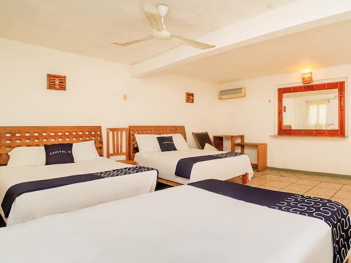 Dobro došli u Capital O Verdemar – vaš mirni odmor uz ocean u Acapulco's Pie de la Cuesta! Probudite se uz zadivljujući pogled na ocean u našoj sobi Deluxe, opremljenoj klima-uređajem, zvučnom izolacijom, privatnom kupaonicom, televizorom ravnog ekrana i besplatnim bežičnim internetom – sve je osmišljeno za opuštajući boravak.