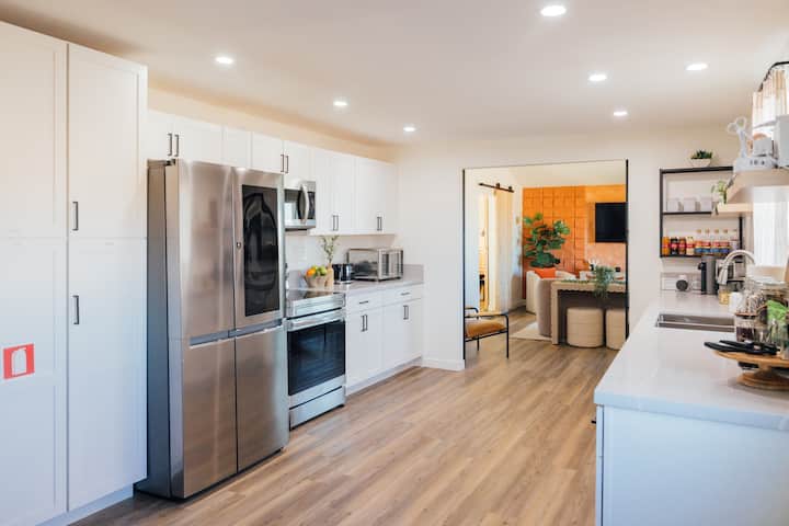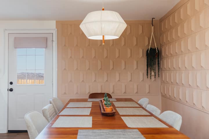 Dobro došli u Wanderlust, pažljivo uređeno utočište u pustinji u blizini nacionalnog parka Joshua Tree smješteno na pet privatnih hektara. Ovo je pažljivo osmišljen prostor za promatranje zvijezda, uživanje u miru i luksuzu te pomno odabrane detalje – romantično utočište u pustinji za odmor i opuštanje, savršeno za parove, obitelji i prijatelje. Uživajte u posteljini marke Cariloha, kadama inspiriranim spa centrom, sezonskim kadama za opuštanje, odabranom šanku s kavom i čajem, pogledu na planine i potpuno opremljenoj kuhinji za zajedničke obroke.
