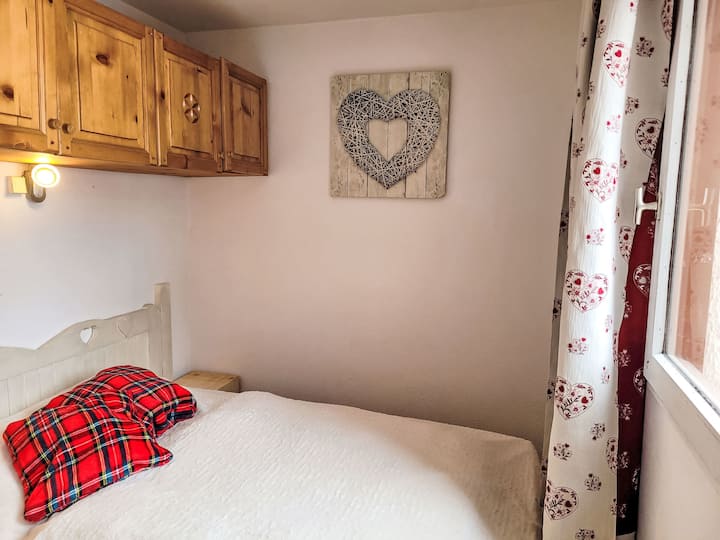 „Vanoise 266”, 2-sobni stan 27 m2 na 2. katu, okrenut prema sjeveru. Prostran, vrlo praktičan i udoban namještaj: dnevni boravak/blagovaonica s TV-om i električnim grijačem. 1 soba s kliznim vratima s 1 bračnim krevetom (140 cm, dužina 190 cm). Spavaća niša s kliznim vratima s 1 x 2 kreveta na kat (90 cm, duljina 200 cm).