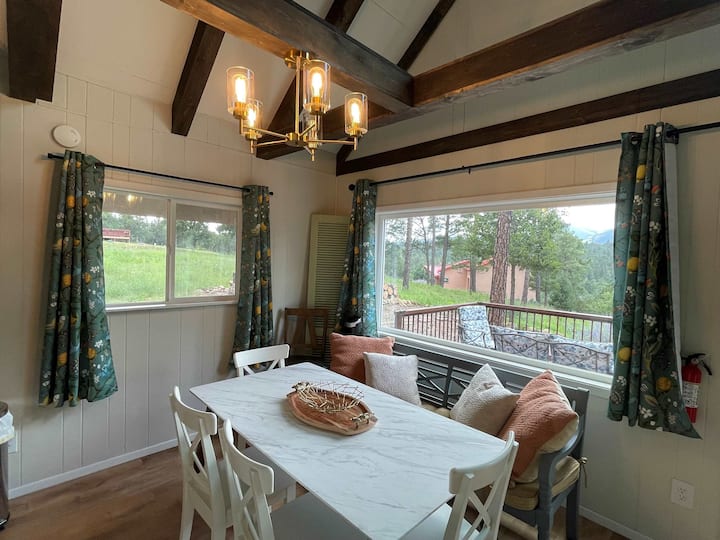 Ova brvnara u stilu planinske kuće nalazi se u prekrasnom dijelu Sun Valley, koji nudi veće veličine parcela i prirodniji prostor za lutanje. Uživat ćete u širokom pogledu na Sierra Blancu i planinski lanac s imanja i prozora sa slikama! Ova novouređena brvnara svijetla je i vesela, a opremljena je i novijim namještajem. U prizemlju se nalazi glavna bračna soba s vlastitom kupaonicom i druga spavaća soba s dva odvojena kreveta. Visoki nadsvođeni stropovi vode do druge prostrane glavne spavaće sobe s vlastitom kupaonicom i jednim bračnim krevetom i jednim bračnim krevetom. U dnevnom boravku nalazi se veliki kamin na drva za one prohladne noći uz kamin. Ova je brvnara dobro uređena, a pažnja posvećena detaljima osigurat će vam ugodan boravak u planinama u ovom smještaju!
