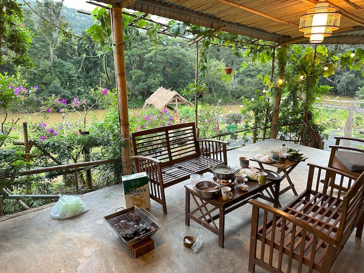Cijela drvena kuća 2 spavaće sobe (6 gostiju) s pogledom na potok