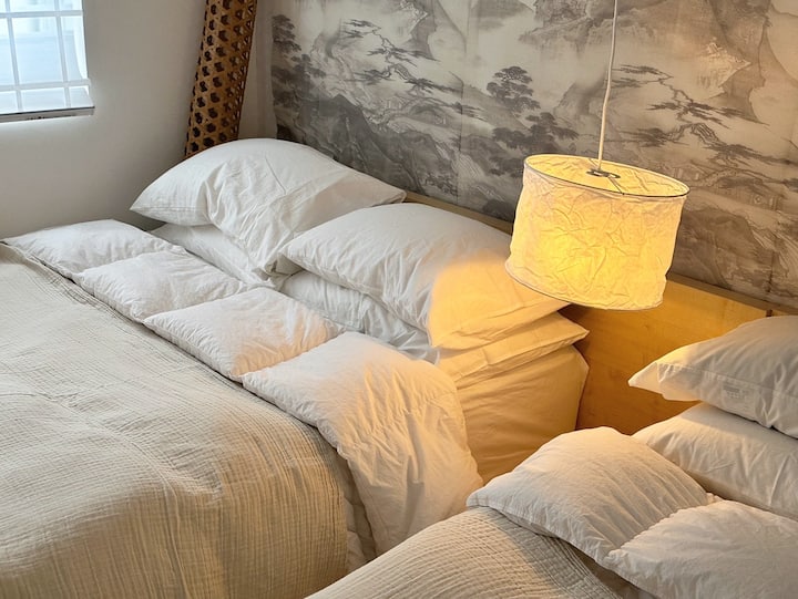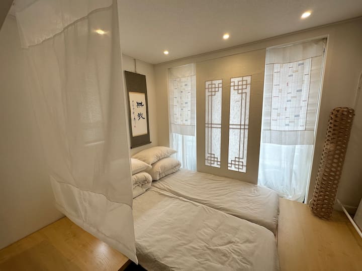 Dobro došli u smještaj無我 [MU:A]. 無我 [MU:A] znači „netko je u zoni”, gdje se zaista možete zaljubiti u radost putovanja. Smješten na liniji Hongdae AREX, možete se jednostavno vratiti kući tako da se preselite 850 metara odavde duž staze parka do kafića Blue Bottle Cafe u Yeonnam-dongu.